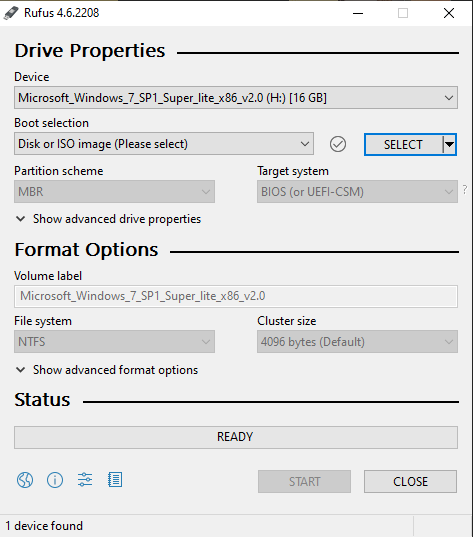 You can change the Volume label, otherwise, I left all the settings as they were. Some settings like the Partition scheme and Target system, I could not change. Then just click on START.
