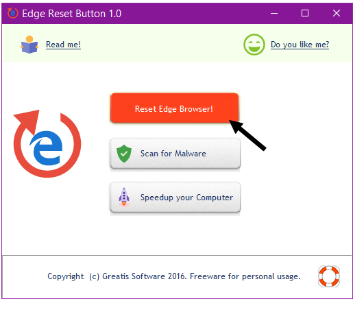 Just install and run it. I pinned it to the Taskbar so if it happened again it would be easy to access. So if your Edge browser freezes up with this ad. Just open the program, Click on th Reset Edge Browser! button, you'll notice the browser shutting down in the background and problem solved.