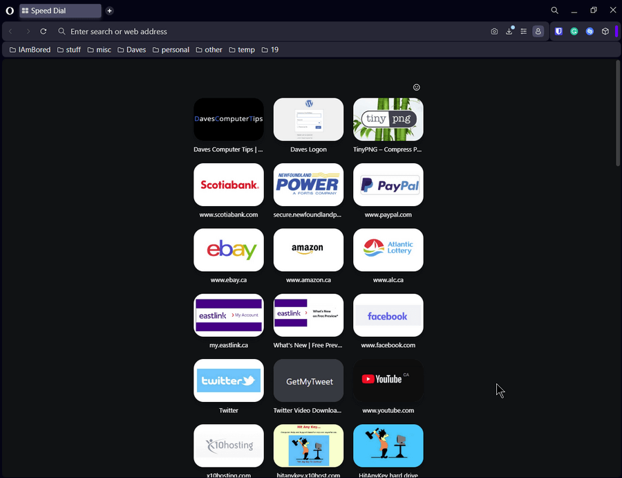 Opera Speed Dials. I always referred to as "bookmarks on steroids". First created by Opera, copied by everybody else. :-) The last few updates became a nightmare with issues. I think I got everything straightened out. One thing I noticed with my Speed Dials, most were just greyed out squares. Like this: