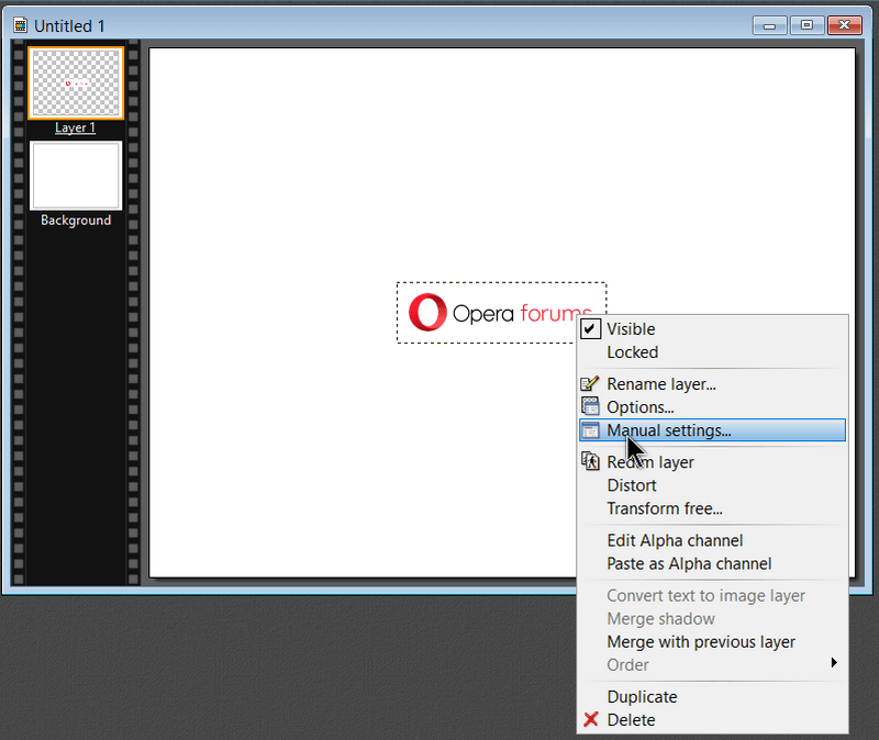 Now I have a small version of the “Opera Forums” logo on the white background. I want to make it larger. I right-click on the logo section and click on “Manual settings” in the resulting menu.