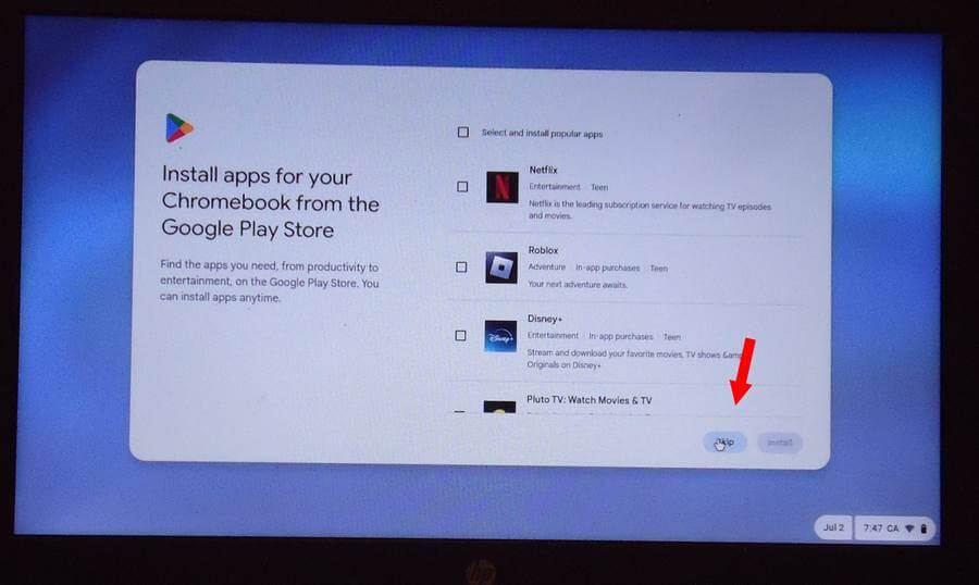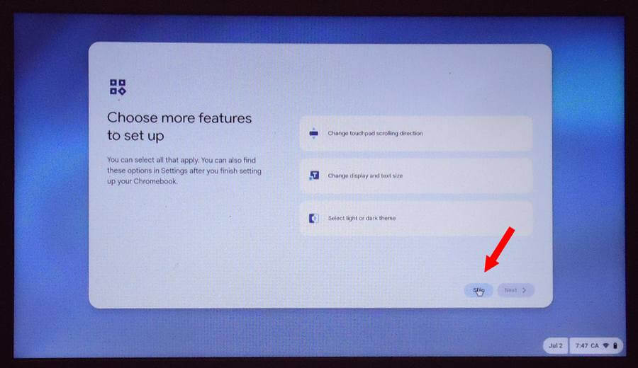 You'll get a screen to Choose more features to set up. Again I skipped.