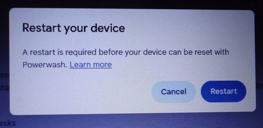 Then it goes to a Powerwash in progress screen. Note: the system may restart a few times during this reset process.