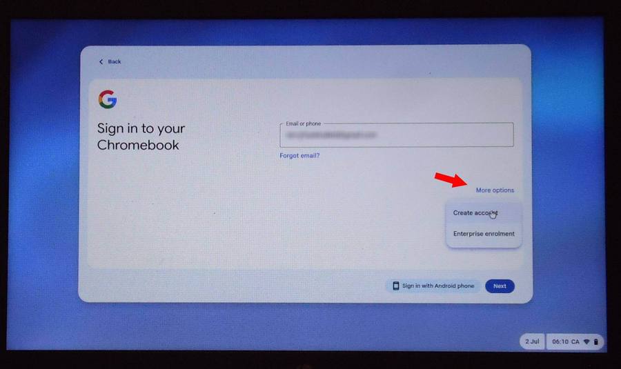 Then just sign into your Google Account with user email (or phone number) and password. If you don't have an account or want to create a new one by clicking on More options then Create account.